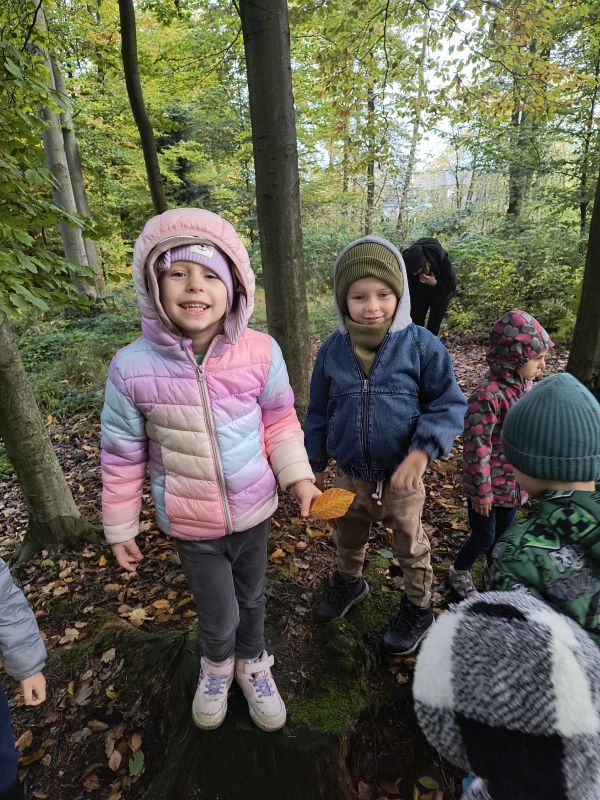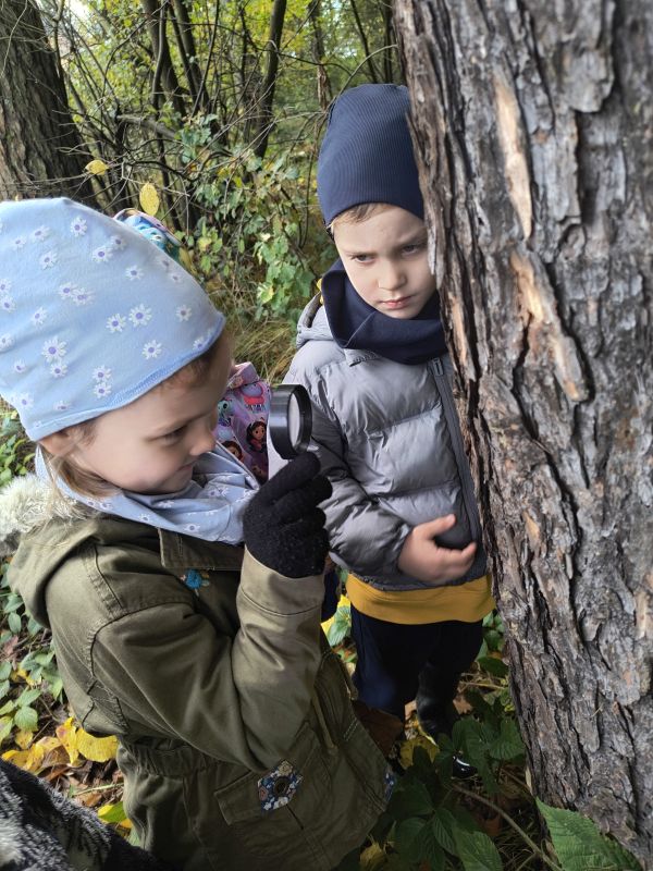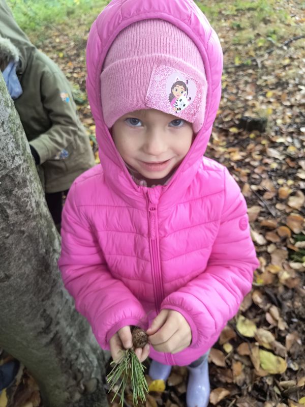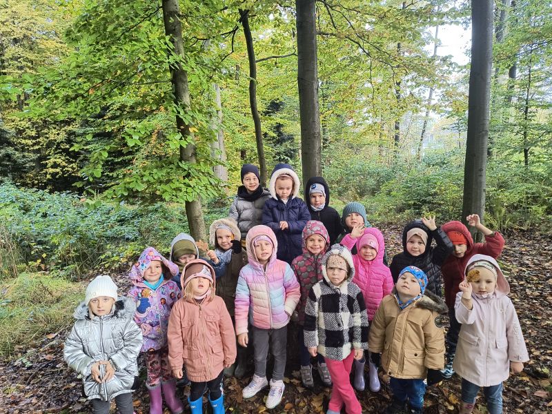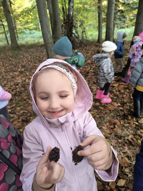 Przedszkolaki z grupy 0b wybrały się na spacer do lasu, by poszukać darów jesieni oraz z bliska przyjrzeć się drzewom i ich budowie. Dzieci z ogromnym zainteresowaniem obserwowały korę, liście i korzenie, zbierały szyszki, żołędzie oraz kolorowe liście. Była to nie tylko wspaniała przygoda na świeżym powietrzu, ale także cenna lekcja przyrody. Mali odkrywcy wrócili do przedszkola pełni wrażeń i nowych wiadomości o jesiennym lesie!