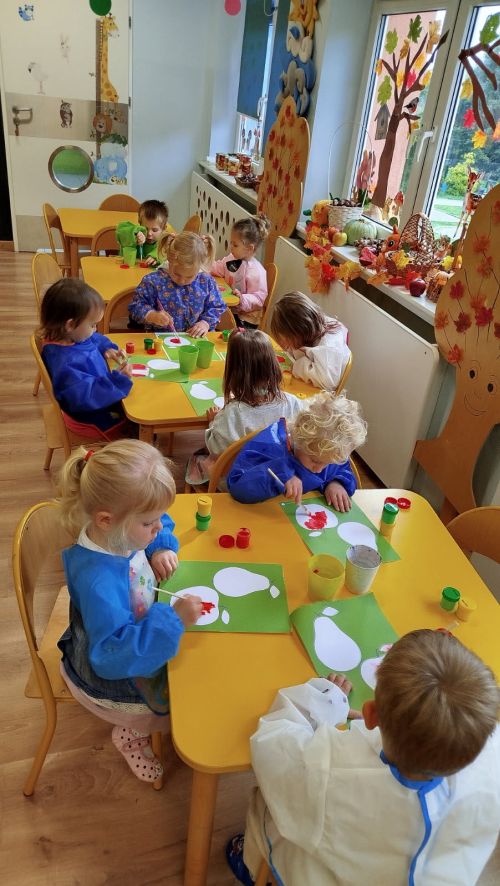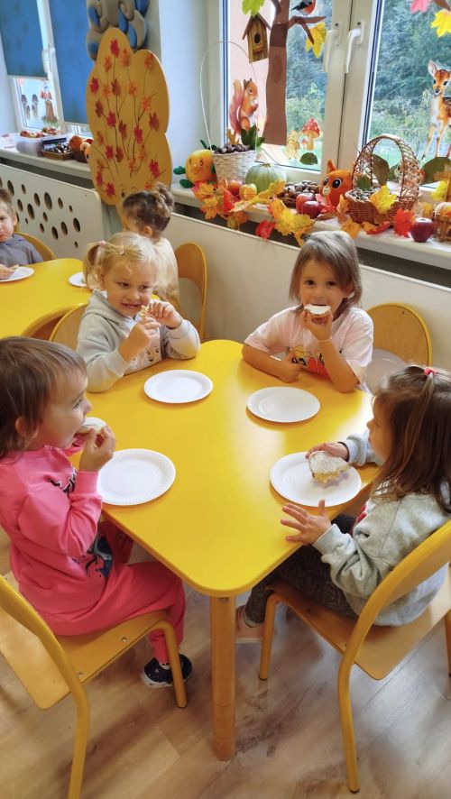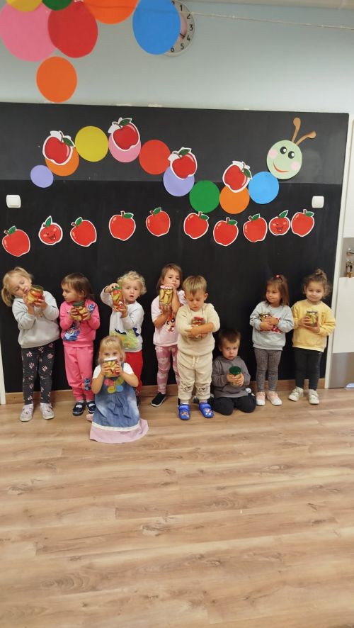 We wrześniu świętowaliśmy dzień z jabłkiem w roli głównej. Na zajęciach milusińscy poznali wygląd i smak jabłka.Zajrzeliśmy także do środka, gdzie kryje się pestka. Ponadto, dzieci samodzielnie przygotowały smaczny kompocik dla swoich Rodziców.